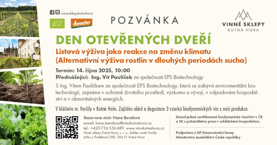 Vinné sklepy Kutná Hora Vás zvou na odborné setkání Listová výživa jako reakce na změnu klimatu