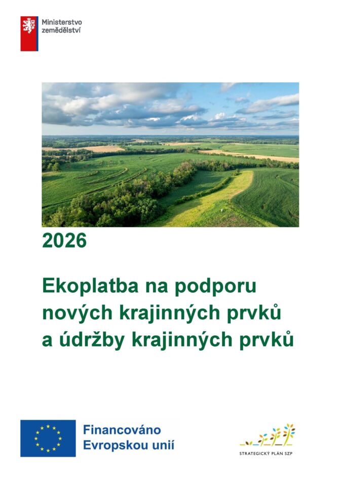Metodická příručka Ministerstva zemědělství k ekoplatbám na podporu nových krajinných prvků a na podporu údržby krajinných prvků představuje komplexní výklad podmínek poskytování ekoplateb zaměřených na zvyšování zastoupení a kvality krajinných prvků v zemědělské krajině v rámci ekoschémat, a poukazuje na změny platné pro rok 2026.