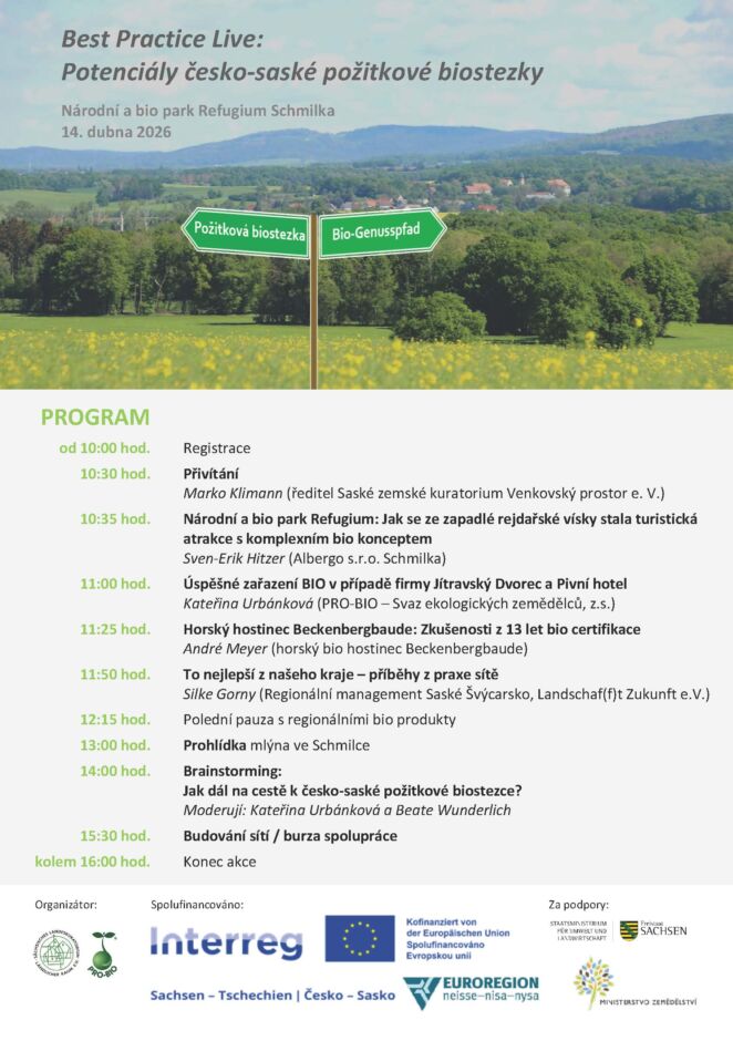 Pozvánka na seminář v německé Schmilce k tématu zařazení bioprodukce do turismu a gastronomie dne 14.4.2026 (Saské Švýcarsko)