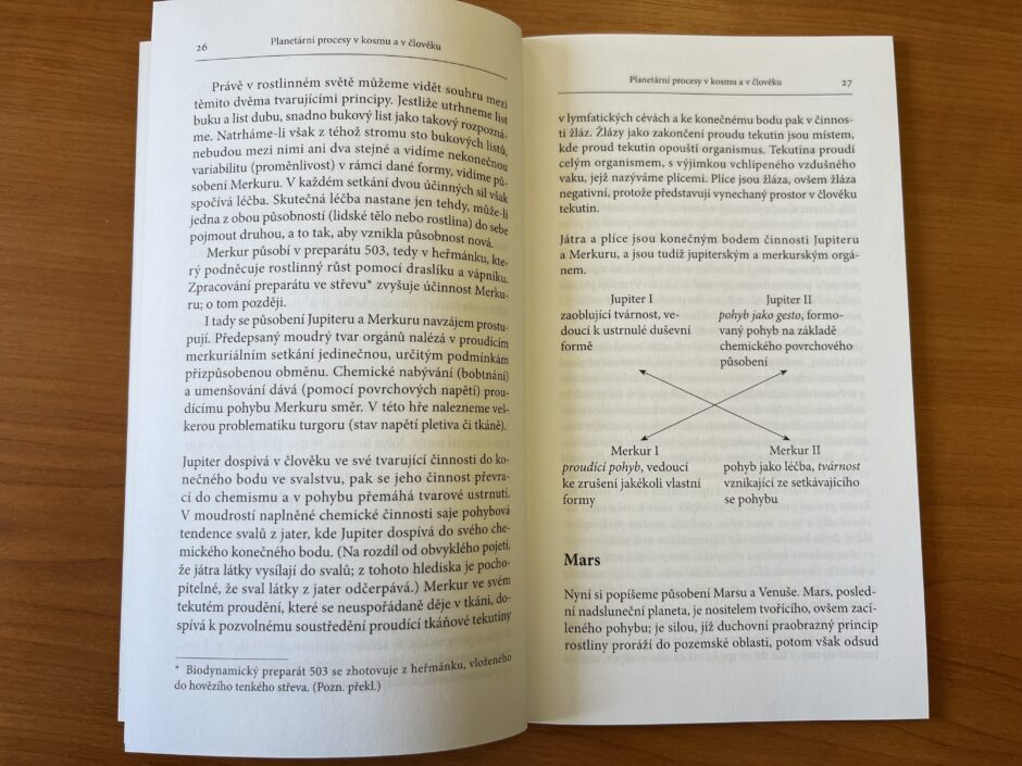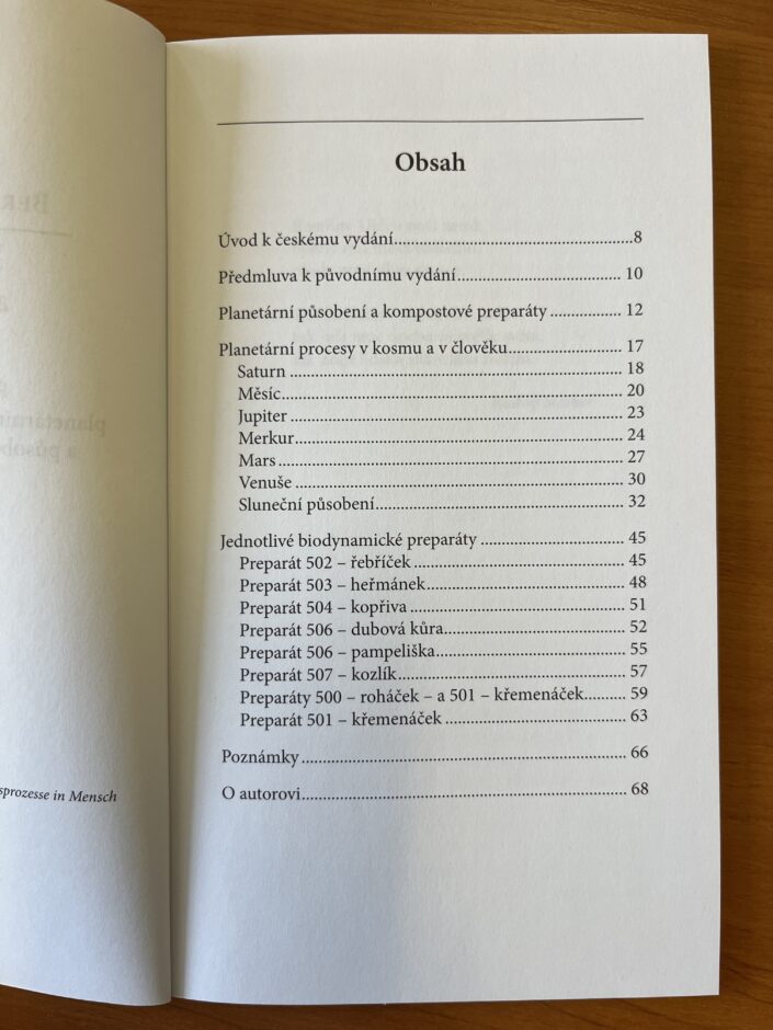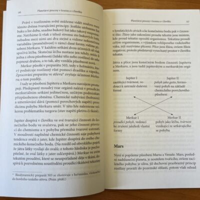 V první části autor, mj. ze svých zkušeností lékaře, popisuje jednotlivé planetární procesy v člověku, rostlinách a Zemi, přičemž si u každé planety všímá vždy dvou protikladných procesů. Ve druhé části tyto poznatky aplikuje na biodynamické preparáty a objasňuje, proč jsou použity právě příslušné rostliny a zvířecí orgány; všímá si také účinků těchto preparátů.